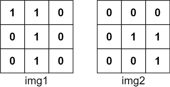 Input: img1 = [[1,1,0],[0,1,0],[0,1,0]], img2 = [[0,0,0],[0,1,1],[0,0,1]]